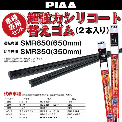 PIAA ワイパー替えゴム 車種専用セット 超強力シリコート 特殊シリコンゴム仕様 2本入 (650mm + 350mm) 日産 セレナ シルフィ/ホンダ ステップワゴン フリード/スズキ ランディ 他 AMRRS006